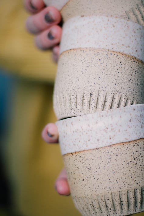 One of the proudest objects I have ever made was made back in August 2021. My wife and I made 100+ wine tumblers for our guests at our wedding and getting to make these together was an incredible experience. We designed the tumblers before 3D printing the master, making plaster moulds, making our own slip and glaze, slip casting, glazing and firing - all ourself, all 100+ tumblers. It’s still an experience we reminisce about today. We have talked about making a collection together ever since and this month I am excited to launch “bud” which will be made by our own hands.