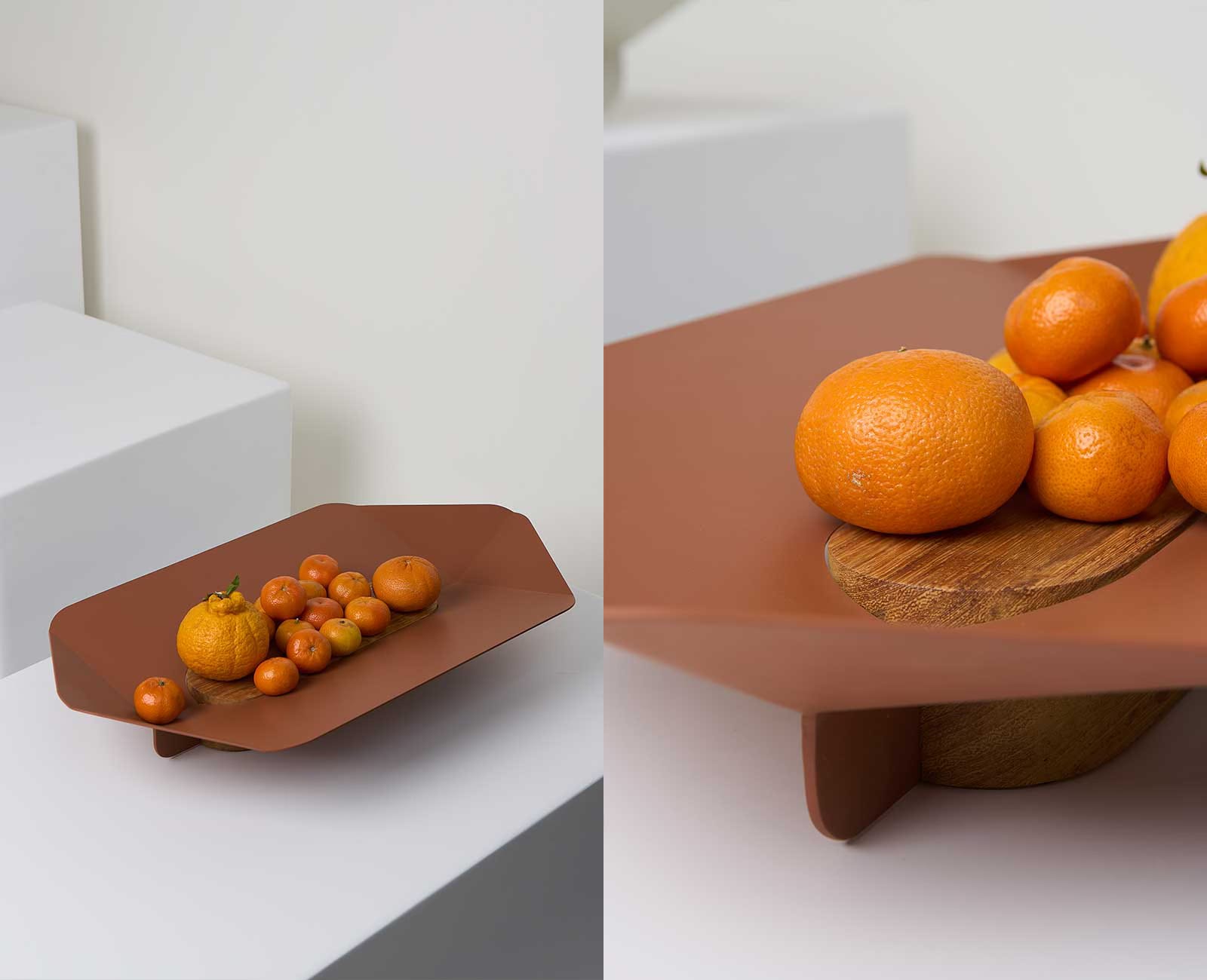 Developed from a lighting collection, this centrepiece is a stunning combination of folded sheet metal and hardwood. A centrepiece for any home.