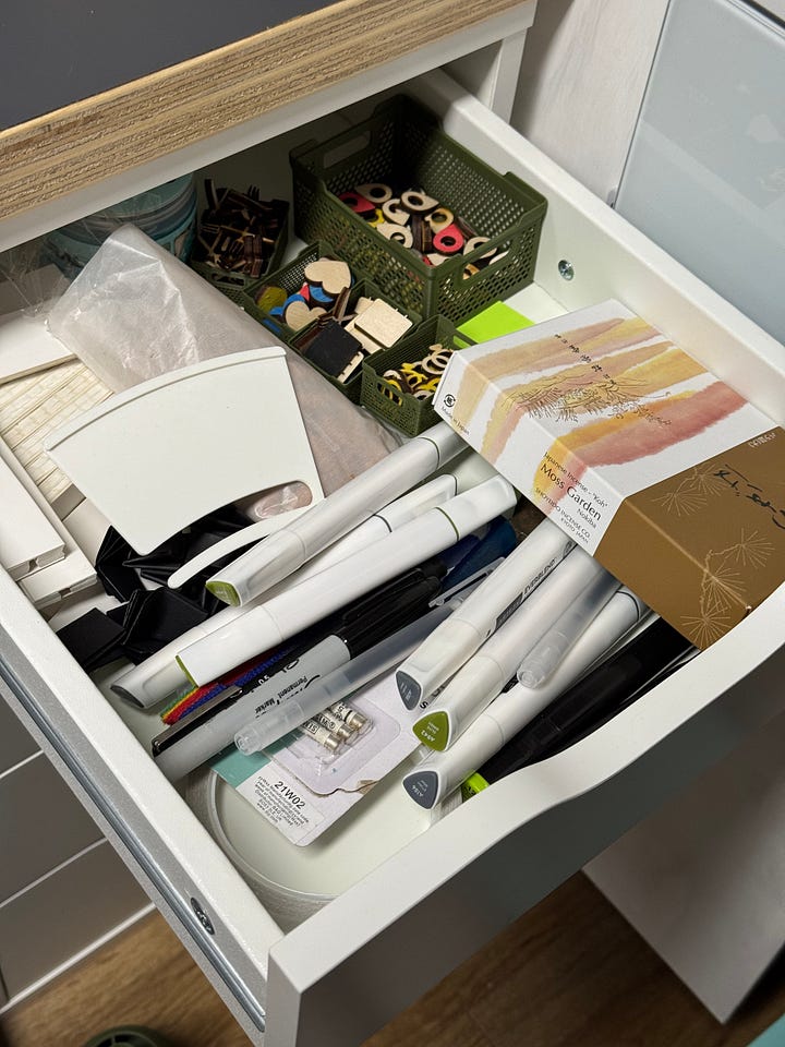 One day I will do a studio tour in an update. My small studio packs a punch - it’s a small space that is incredibly flexible. That being said, my drawers were a mess. I couldn’t afford not to be maximising this space anymore so took some time to really think about what each drawer should be doing. With that in mind, I designed and 3D printed simple inlays so that everything has a place - meaning I should always be able to find what I need… when I need it!